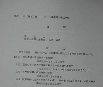 個人再生の要件を満たすと裁判所が認めた場合、手続を始める決定を出します。