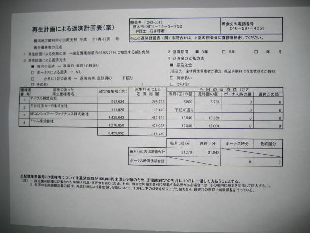 認可された計画案どおり支払うことで、残額はカットされます。