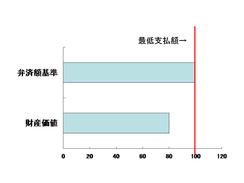 財産が80万円の場合には、最低弁済基準の100万円の方が多いので、こちらが最低支払額となります。