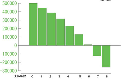 借金額がマイナスになっているのが過払い状態で、お金が戻ってくる場合です。